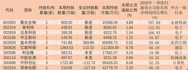 亮眼的业绩也令机构关注度大幅提升。统计显示,上述25只业绩实现同比增长的个股中,截至今年一季度末,共有10只绩优股被社保基金持仓,合计持股市值为37.61亿元。其中,6只绩优股成为今年一季度社保基金新进增持的重点品种,社保基金新进持有傲农生物、普利特、洁美科技、华正新材等4只绩优股,持股数量分别为900.00万股、439.91万股、168.28万股和149.36万股,并继续对益丰药房、亿联网络两只绩优股实施加仓操作,增持数量分别为389.86万股、110.33万股。
