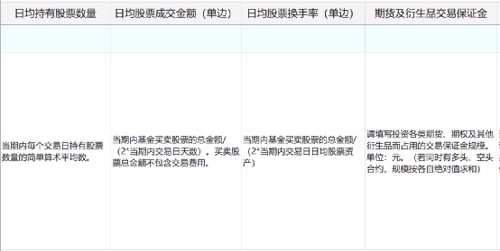 表格还需要填写日均持有股票数量、日均股票成交金额(单边)、日均股票换手率(单边),以及期货及衍生品交易保证金、场外衍生品合约价值等信息。