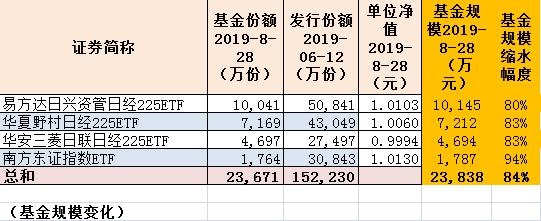 其中,易方达日兴资管日经225ETF规模由成立时的50841万元降至10145万元,缩水80%。