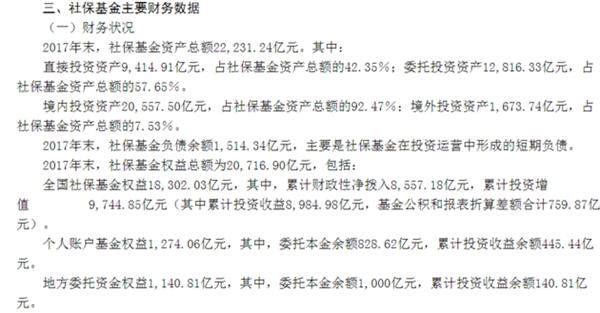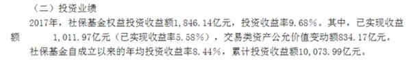报告还显示,社保基金2017年投资收益率达9.68%,据此,社保基金自成立以来的年均投资收益率达8.44%。