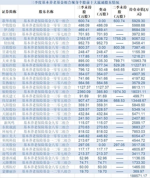 截至三季度,基本养老基金组合都重仓了以下这些股票。