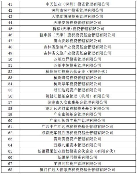 最后,基金君附上此次协会公布的68家疑似失联私募机构的名单,其中,北京润天行健投资管理有限责任公司、中企会日新(北京)投资基金管理有限公司、广东汇智盈丰资产管理有限公司、上海东万股权投资基金管理有限公司等涉及法律诉讼,包括民间借贷纠纷、合同纠纷等,还有部分私募被列入失信被执行人。
