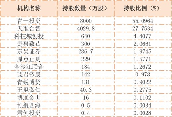 在其他机构投资者中,苏州科技城创业投资有限公司(以下简称科技城创投)是天准科技的发起人。科技城创投、上市公司东吴证券均属于其他类国有持股主体,分别持有天准科技640万股、286.7万股股份,持股比例分别为4.41%、1.97%。