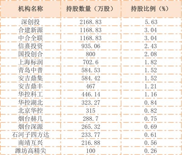 此外,睿创微纳背后的机构投资者不少都颇有来头。例如,深圳合建新源投资合伙企业(有限合伙)(以下简称合建新源),其大股东为中核全联投资基金管理(北京)有限公司,后者是中国核工业建设集团公司旗下公司。而潍坊高精尖股权投资基金合伙企业(有限合伙)的基金管理人为北京高精尖产业基金,由财政资金出资、北京市经信委筹备设立。