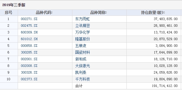 根据最新披露的季报,截至三季度末,该基金前十大重仓股情况如下: