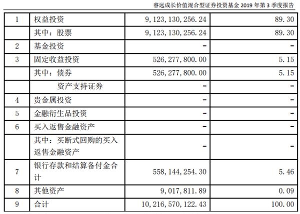 睿远成长价值混合三季报资产配置情况
