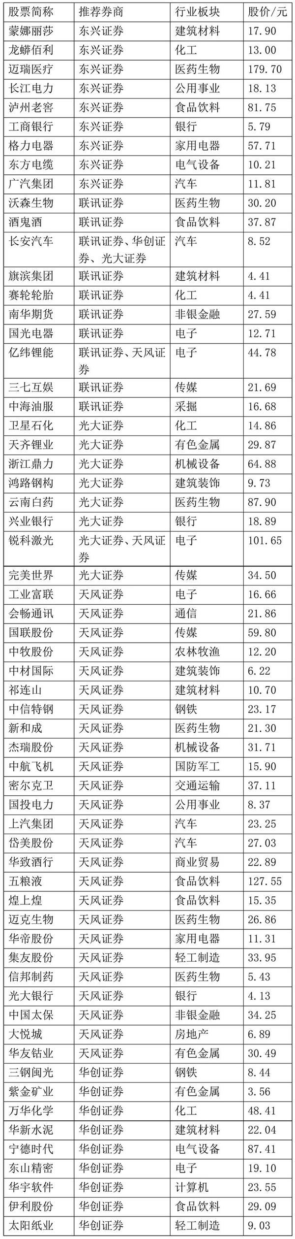 部分券商12月金股名单