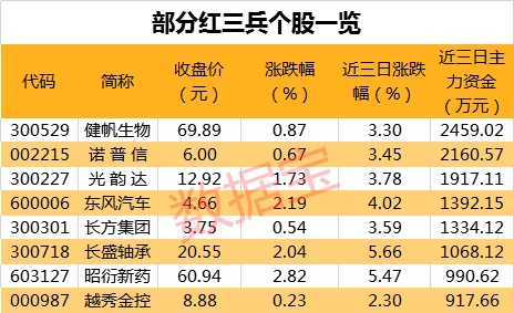 17股呈“红三兵”形态 健帆生物等获资金青睐