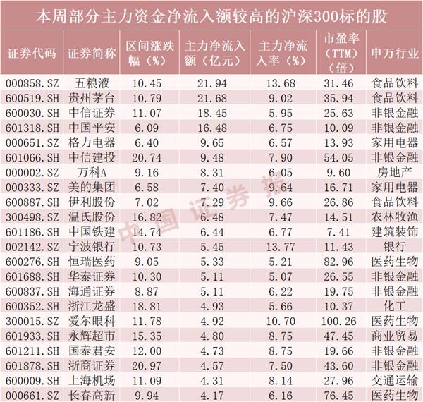 (原标题:主力资金偏爱大盘蓝筹 逾百只沪深300标的股吸金过亿元)