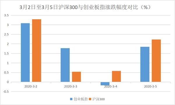 以沪深300指数与创业板指数为例,据数据统计,2月4日启动的反弹行情,前4个交易日创业板指全部跑赢沪深300;而最近4个交易日中,有3日沪深300指数跑赢创业板指。
