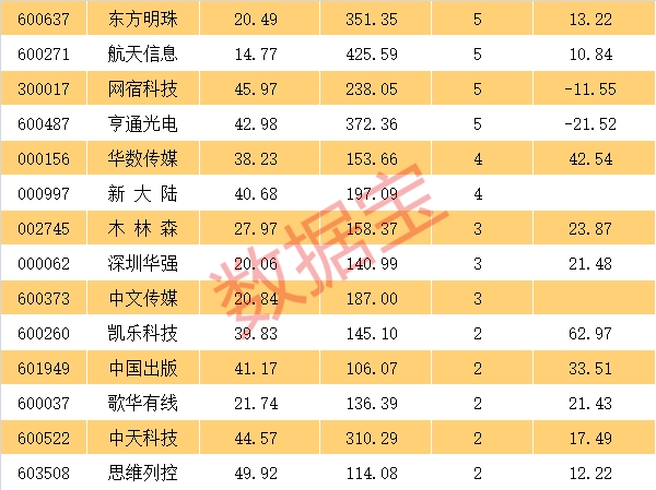 部分股票呈现出底部爆量上涨的态势。其中,亨通光电和中天科技两只个股涨停,凯乐科技、万达电影、华策影视、网宿科技、海能达等个股涨幅均超过5%。量能方面,亨通光电5日量比达到1.75倍,中天科技超过2.42倍,万达电影超过2倍。