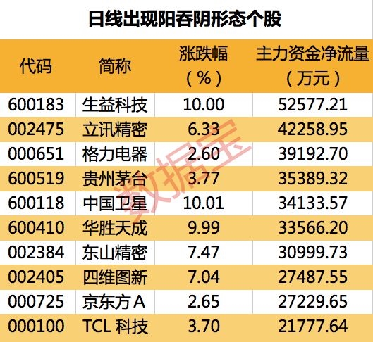 580只股出现阳吞阴形态