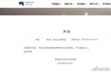 西南政法大学商学院网站4月10日发布声明,商学院法治企业研究院已解除鲍毓明兼职研究员的聘任,并已通知本人。