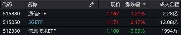今日,RCS概念股早盘表现活跃。在场内基金方面,通信主题基金涨跌互现,通信ETF(515880.SH)涨超1%,5GETF(515050.SH)涨约0.17%,信息技术ETF小幅下跌。消息面上,5月10日晚间,中移动推出的“5G消息”App已在主流应用商店上线,不过今日中国移动称“因存在技术问题”,该APP目前已临时下线。