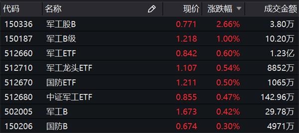 除了5G板块外,军工板块早盘震荡上扬,板块内多只个股涨停。场内基金方面,军工主题相关基金也纷纷走强,军工股B(150336.SZ)涨超2%,军工B级(150187.SZ)涨约1%,军工ETF(512660.SH)、军工龙头(512710.SH)ETF等基金跟涨。有机构称,作为内需型板块,军工板块受疫情的影响较小,叠加国内国外事件及改革等催化,军工板块有望受到进一步关注。