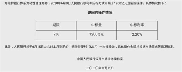 值得注意的是,人民银行公告还称,将于6月15日左右对本月到期的中期借贷便利(MLF)一次性续做,具体操作金额将根据市场需求等情况确定。