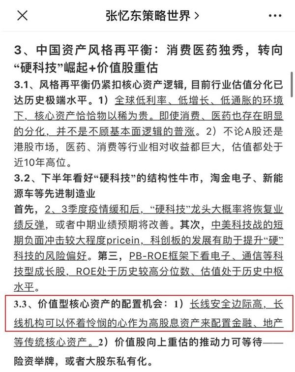 兴业证券全球首席策略是张忆东在近日一篇报告中提出,银行等金融板块安全边际高,“长线机构可以怀着怜悯的心作为高股息资产来配置金融、地产等传统核心资产。”