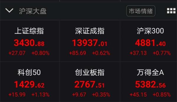 A股三大指数集体飘红