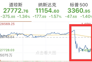 美东时间周二,美股尾盘跳水,三大指数跌幅均超1%。