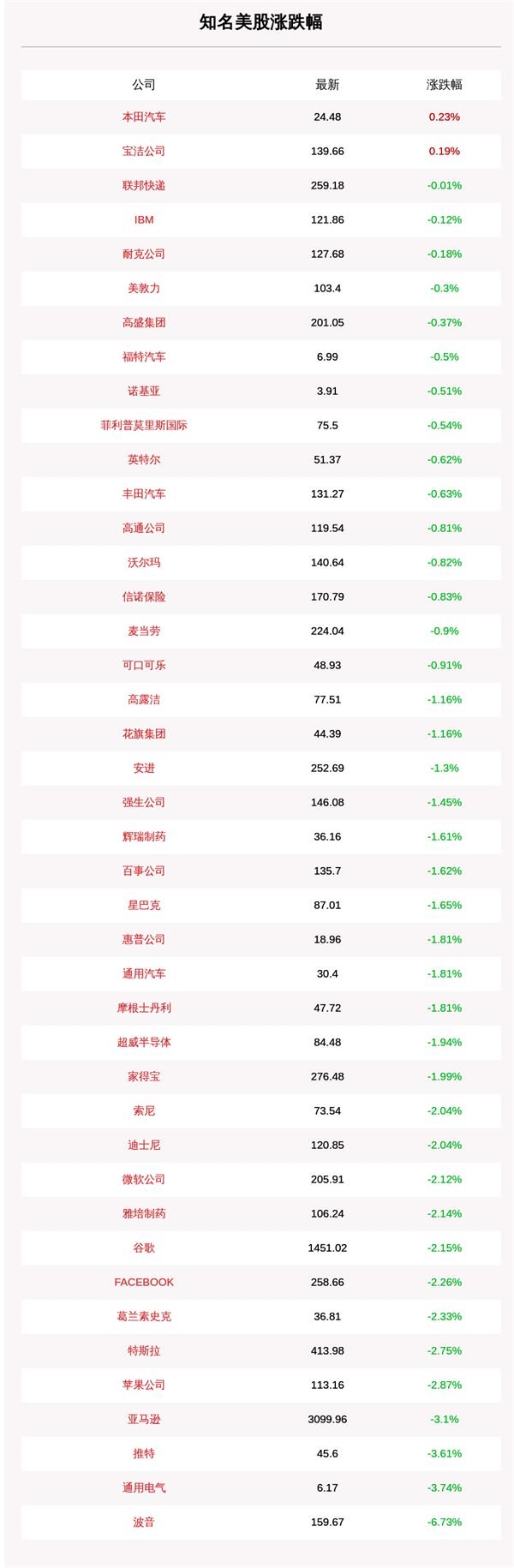 美国大型科技股全线走低,苹果跌2.87%,亚马逊跌3.1%,奈飞跌2.84%,谷歌跌2.15%,Facebook跌2.26%,微软跌2.12%。