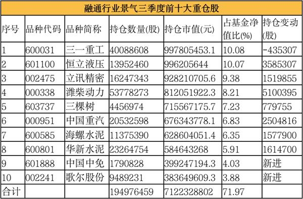 融通基金副总经理兼权益投资总监邹曦三季度前十大重仓股保持稳定,三一重工、恒立液压、立讯精密继续坐稳其前十大重仓股,新进个股中有中国中免、歌尔股份;长春高新、万达信息退出前十大重仓股。