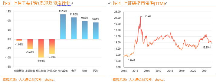 美股:截至7月30日,标普500指数当月上涨2.27%,并创历史新高,纳斯达克指数上涨1.16%,继续创下新高,道琼斯工业平均指数上涨1.25%。本月美国经济增长不及预期叠加疫情反复通胀压力有限,美联储议息会议维持鸽派,美股指数继续创出新高。短期来看,市场情绪或将继续推升美股上行;中长期来看,尽管经济持续复苏会带来对应公司盈利水平的提升但通胀压力可能带来的联储缩表将对成长科技股估值构成压力,或拖累指数持续上行。我们保持观点认为,中短期的焦点或集中在拜登政府发力的基础建设、 公用事业、传统制造、清洁能源领域,科技股或需要等待时机。