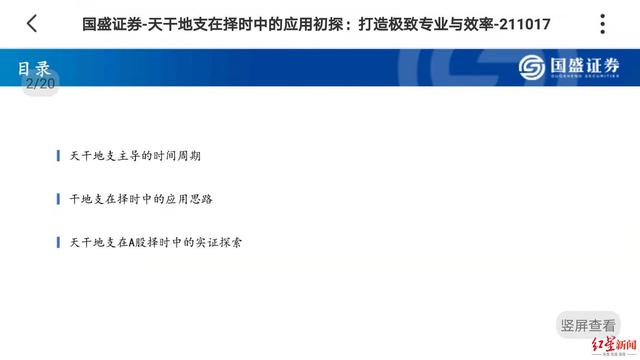 目前网络上该研报的大部分链接已经失效。红星资本局在研报集合平台慧博投研资讯找到并下载了该研报,研报显示,这是国盛证券所在10月17日晚上发布的,属于金融工程、量化分析,共20页。研报首先介绍了什么是天干地支、天干地支主导的时间周期。