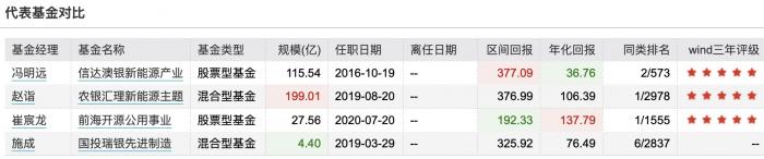 我们以目前投资能源关注度最高的几位明星基金经理来举例。