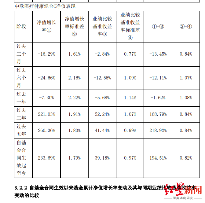 数据显示,截至2月15日,近一年内中欧医疗健康混合A跌幅为38.06%,中欧医疗健康混合C跌幅达38.56%;而中欧医疗创新股票A跌幅为41.24%,中欧医疗创新股票C净值跌幅达41.72%。