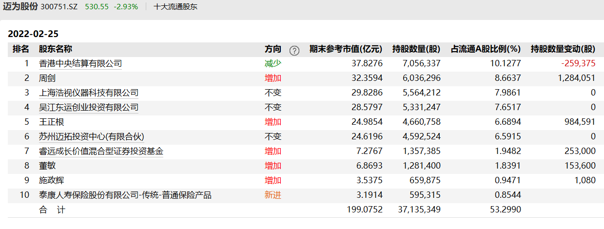 除了葛兰和谢治宇,傅鹏博所管的睿远成长价值,近日也有隐形重仓股浮现。迈为股份2021年报显示,傅鹏博管理的睿远成长价值持有约110万股,新进到前十大流通股东名单中。值得一提的是,迈为股份截至2022年2月25日的持仓还显示,睿远成长价值的持股数量进一步增加到约135.7万股。