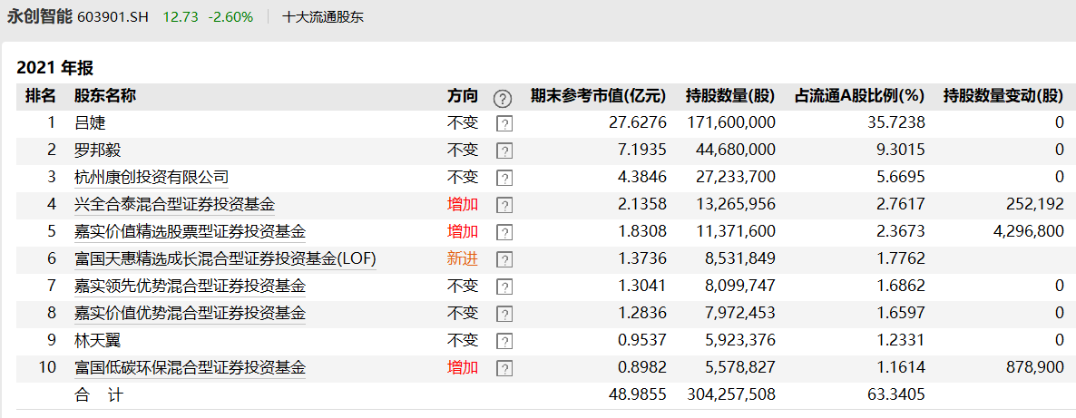 再看朱少醒管理的富国天惠成长,近期也出现在多只上市公司的前十大流通股东名单中,比如永创智能2021年报显示,富国天惠以约853万股的的持股数排在第六位;和而泰2021年报显示,富国天惠的持股数约为2780万股,增加约1080万股。