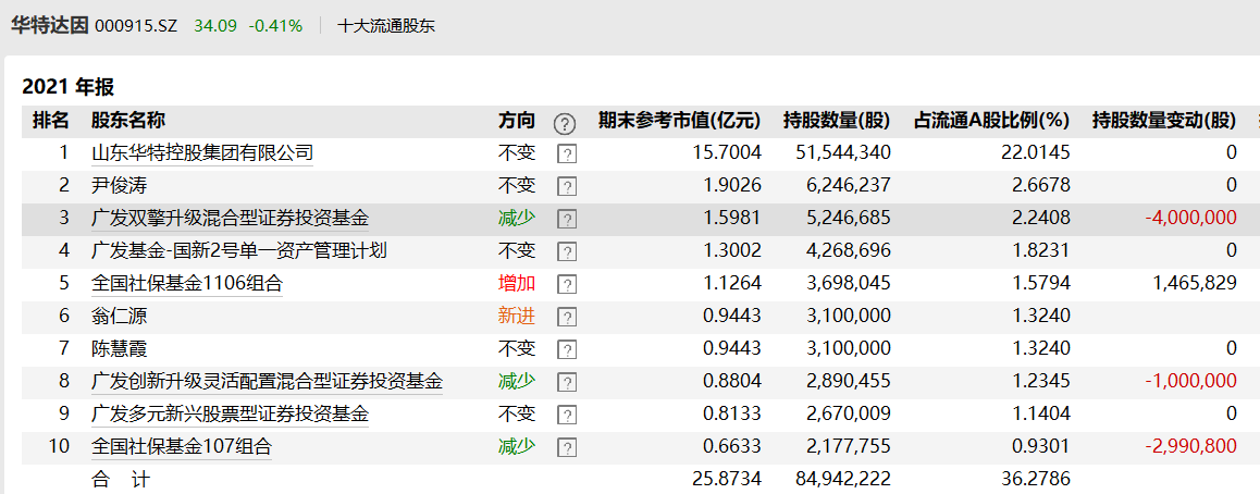 广发基金的刘格菘也有一些持股曝光,华特达因2021年报显示,广发双擎升级混合、广发创新升级灵活配置混合、广发多元新兴股票均在前十大流通股东名单中。