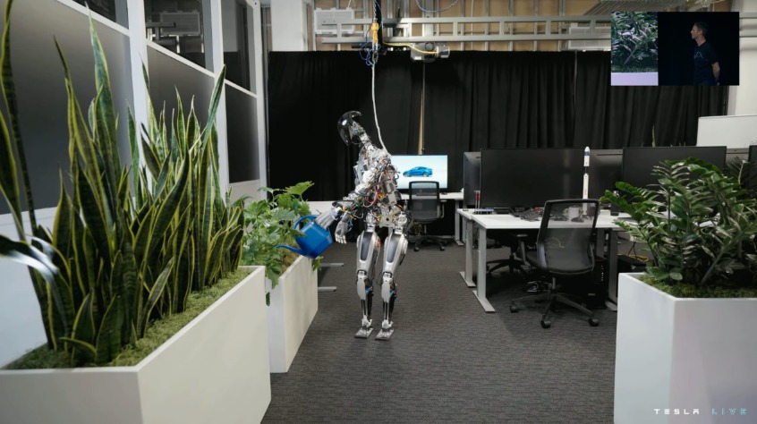 擎天柱有哪些使用场景?办公室内,它能灵活地提起水壶浇花、双手搬运物料至目标位置、准确定位周围人员并主动避让;特斯拉弗里蒙特工厂中,擎天柱已经开始投入简单工作,工程师为其规划了相应行动路线。