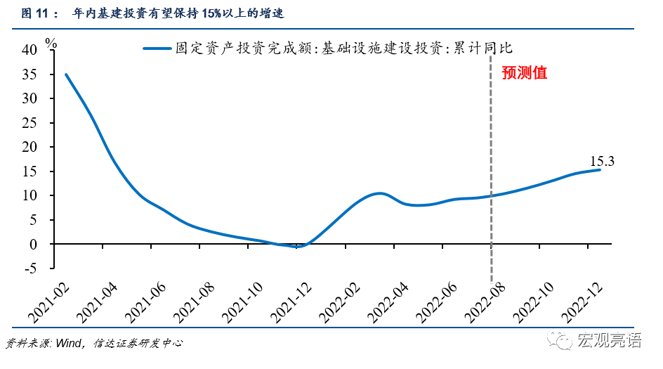 基建投资的堵点是怎样打通的?对于今年3万多亿的地方政府新增专项债券,财政部多次强调要发挥项目资本金的撬动作用,但实际中项目资本金占发行规模的比例仅在7%左右,远不及政策上限,结存限额用作项目资本金的占比也暂未看到提升,撬动能力并不显著。而今年投放的6000多亿元政策行基础设施基金恰恰是补充重大项目资本金的工具,投资撬动力在10倍以上,且资金投放速度较快。三大政策行都表示将尽快推动项目建设形成实物工作量。鉴于这一工具已经打通了基建投资的堵点,我们预计后续基建仍然有望保持强劲势头,全年基建投资可能达到15%以上。