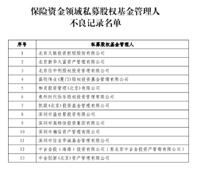各险企注意了!监管通报私募股权基金管理人不良记录名单 叫停合作