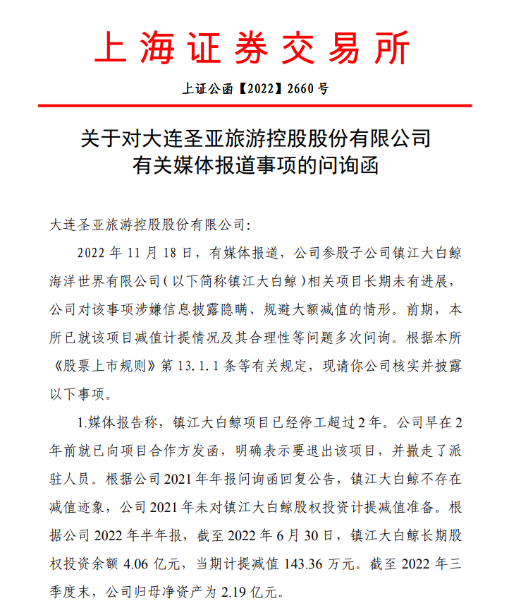 (原标题:大连圣亚被曝“隐雷” 上交所火速发函追问五大问题)