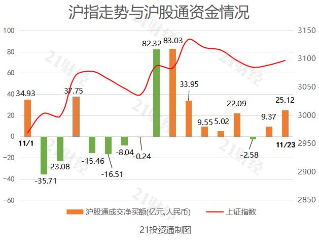 据21投资通智能监测,北向资金全天净买入15.65亿元,内部继续分化,其中沪股通净买入25.12亿元,深股通净卖出9.46亿元。