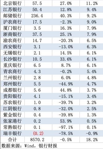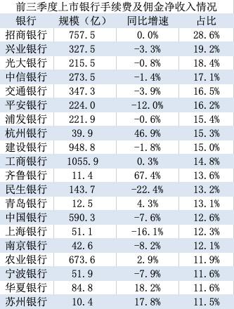 ——前三季度上市银行中间业务收入占同期营业收入的比重为18.2%,相比去年同期下降了0.6个百分点。