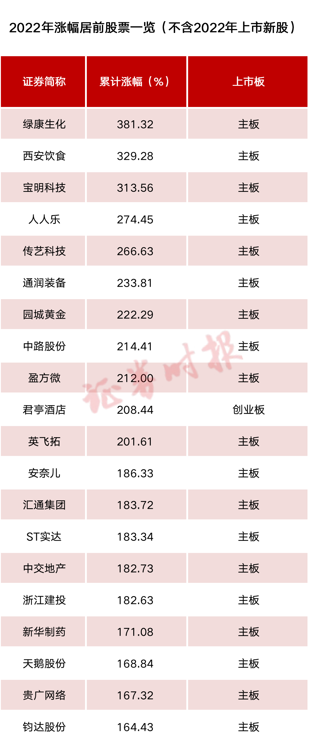 在剔除最近一年内上市新股后,绿康生化成为2022年A股市场涨幅冠军,年度累计上涨381.32%。
