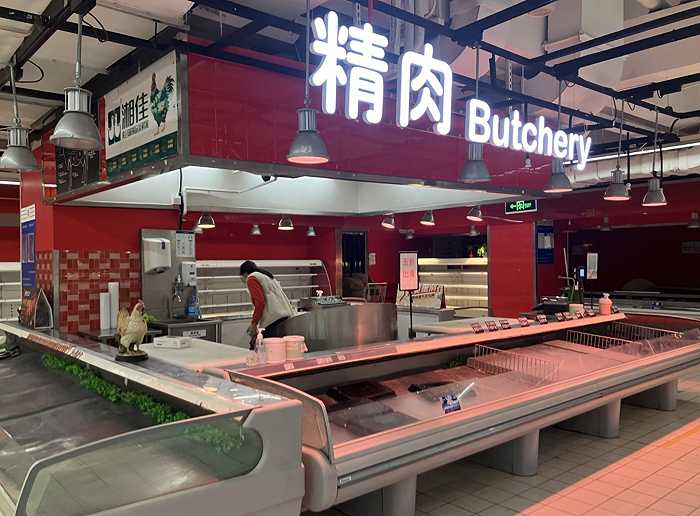 家乐福生鲜区已经被抢购一空(图片拍摄:界面新闻赵晓娟)