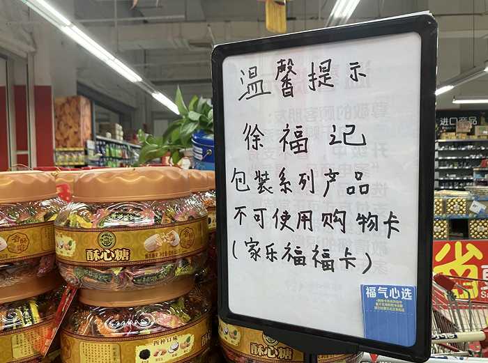 1月9日,界面新闻在北京家乐福首地大峡谷店看到,入口张贴告示称,由于购物卡持续升级中,暂不支持“家电商品、福气心选商品”的结算。