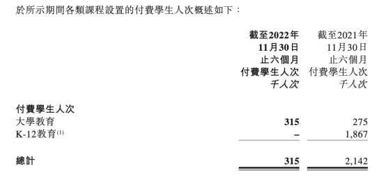 2021年6月-11月,新东方在线的K12教育业务付费学生人数达186.7万。2021年年底,新东方在线已终止学前及K12业务,在此次的报告中,该部分学生数为零。