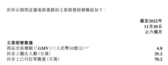 2022年6月-11月,新东方在线商品交易总额(GMV)达到48亿元,抖音上关注人数3520万,抖音平台已付订单数7020万。