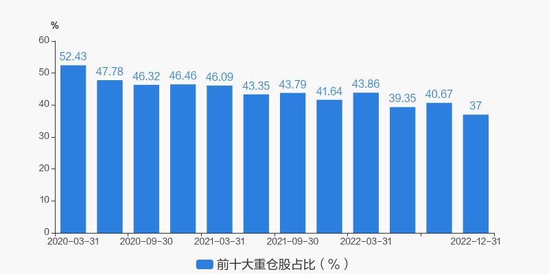 从十大重仓股情况来看,最新一期前十大重仓股占比为37.01%。