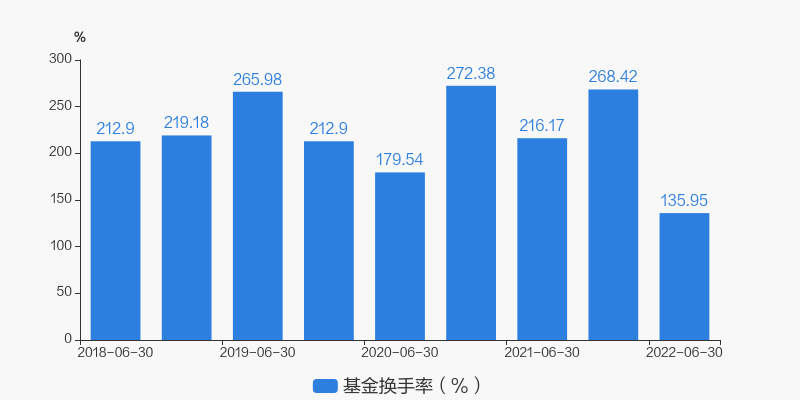 数据说明:1、报告期时间为半年的,对应的基金换手率为半年度换手率。报告期时间为年的,对应的基金换手率为年度换手率。 2、基金换手率用于衡量基金投资组合变化的频率。换手率越高,操作越频繁,越倾向于择时波段操作;基金换手率越低,操作越谨慎,越倾向于买入并持有策略。