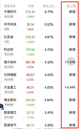 2、在天天基金的官网或者APP的基金详情页查看最新持仓。会展示和上期定期报告比较的增减情况。如下图: