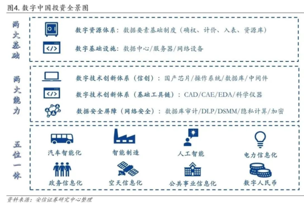 其一,数字经济建设是推进中国式现代化的重要引擎,构筑国家竞争新优势的有力支撑。全要素生产率的提升寄托于数字经济的发展决定了其价值取向的“高大上”,想象空间广阔。