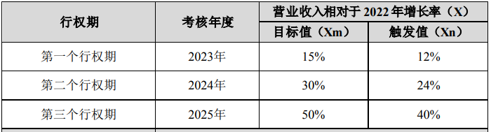 3月14日,康冠科技实施2023年股权激励计划。与其他公司多选择净利润考核、或净利润加营收同时考核不同的是,康冠科技业绩考核基数为2022年营业收入。在2022年营收基数之上,2023年至2025年营业收入增长率目标值分别为15%、30%、50%。