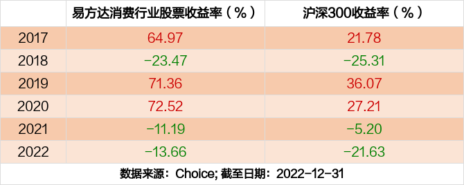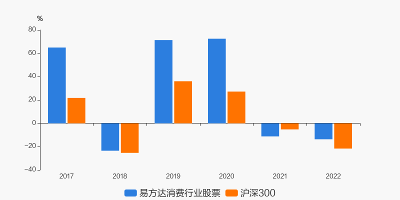 2022年度,截止至12月31日,易方达消费行业股票基金收益-13.66%,同期沪深300收益-21.63%,同类排名148/725。