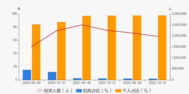 根据易方达消费行业股票2022年年报,最新持有人户数为198.63万人,较上期环比增加-7.04%。其中,个人持有者占比98.04%,机构持有者占比1.96%。